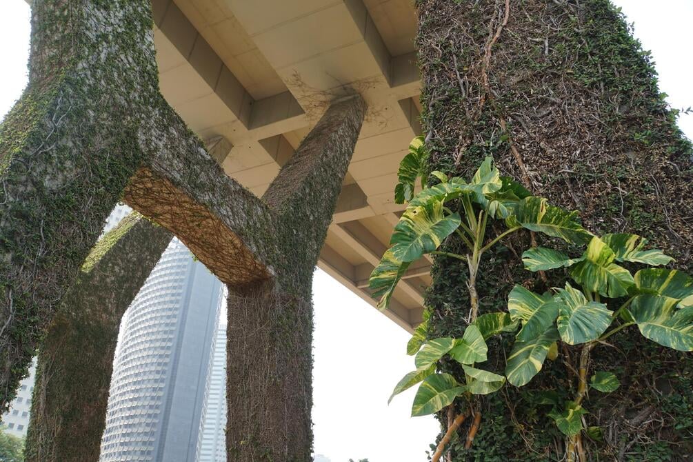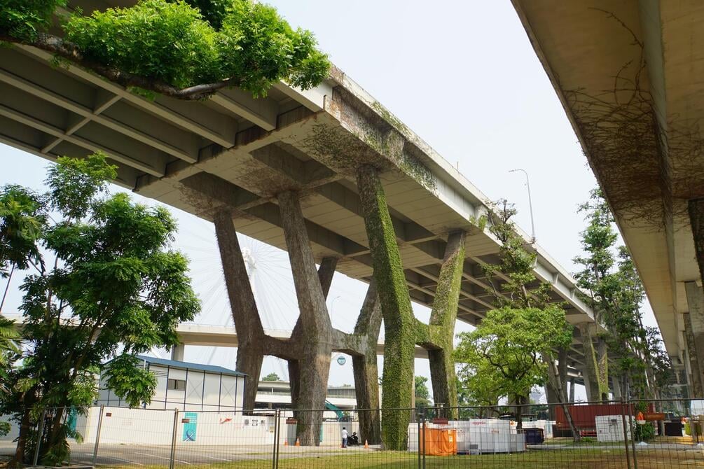 Overgrown concrete structures of the massive road bridges in Singapore.